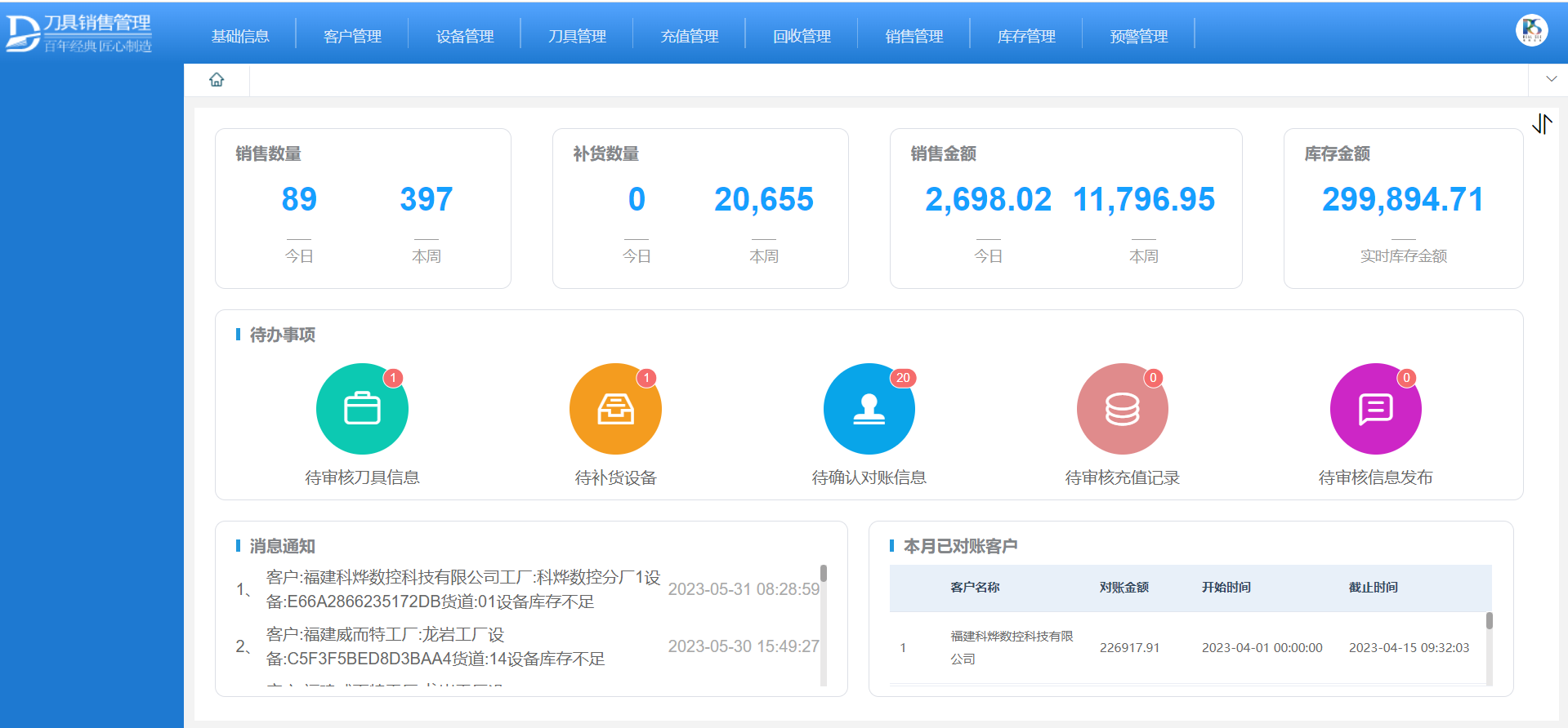 ● 刀具櫃使用監測:通過平台監控每一台刀具櫃使用情況,網絡是否正常,交易是否異常
